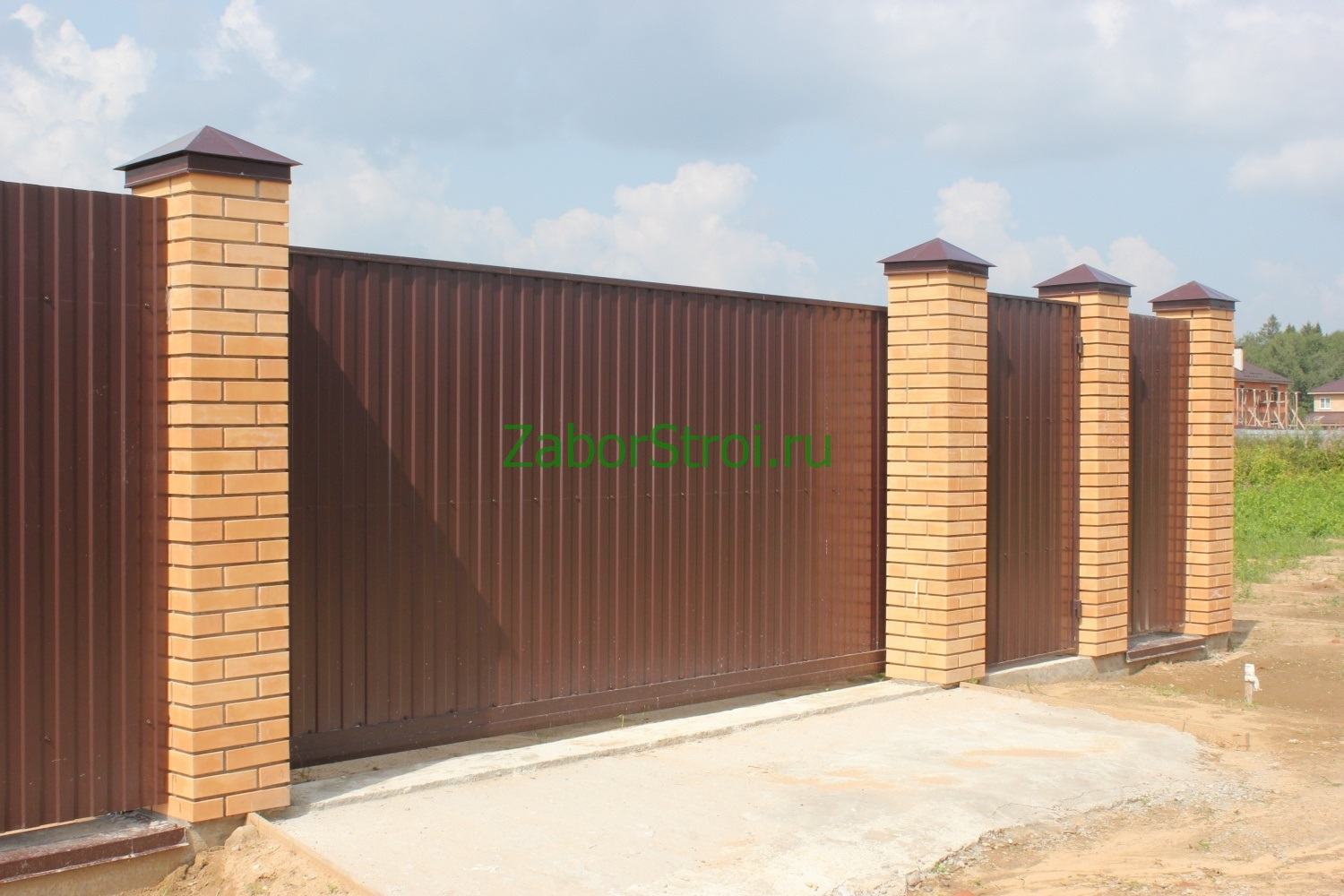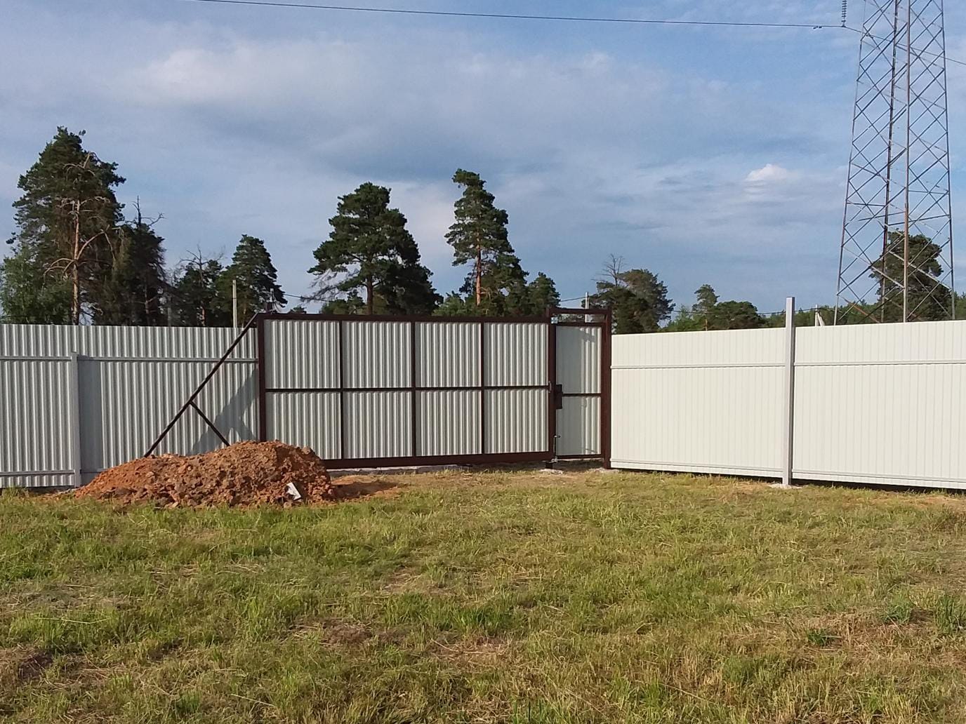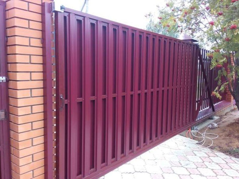 Откатные ворота из профнастила на винтовых сваях (цена на бетонном основании +20000р)